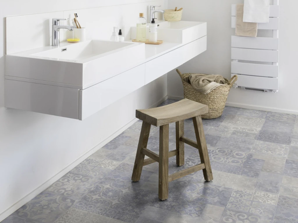 Les carreaux en vinyle ont une largeur de 457 mm, une longueur de 914 mm et une épaisseur de 2 mm. La couche d’usure de 0,3 mm garantit une durabilité particulière et une grande résistance aux chocs et aux rayures du revêtement de sol. Ce produit résistant à l’humidité est approuvé par le fabricant pour une utilisation dans les pièces humides telles que les cuisines et les salles de bains. Ce sol peut être facilement posé au-dessus d’un chauffage par le sol à eau chaude.