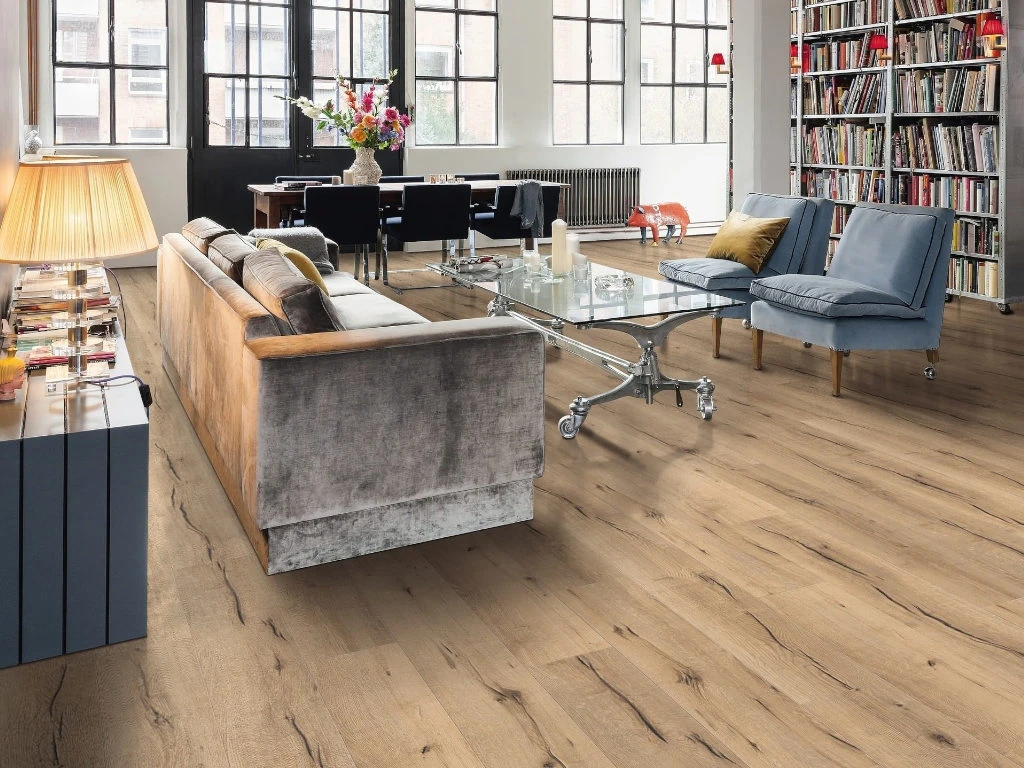 Les lames larges à l’ancienne possèdent, grâce à leur aspect monolame, un look naturel et rustique qui donne à chaque pièce un aspect chaleureux. Le chanfrein périphérique sur les quatre côtés met en valeur le caractère de la lame. Grâce au traitement de surface structuré, ce sol présente un aspect particulièrement haut de gamme qui ne néglige aucun détail.