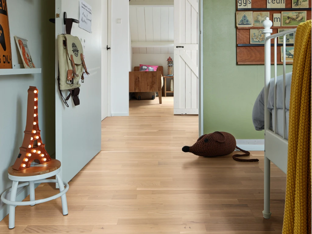 Les lames de 2350 mm de longueur offrent un charme représentatif, particulièrement dans les pièces spacieuses.