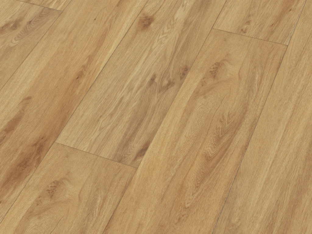 Le chanfrein périphérique en V sur les 4 côtés met en valeur chaque lame et donne ainsi une belle structure à la surface. Grâce à la surface structurée, l’impression d’un véritable sol en bois est visuelle et tactile.