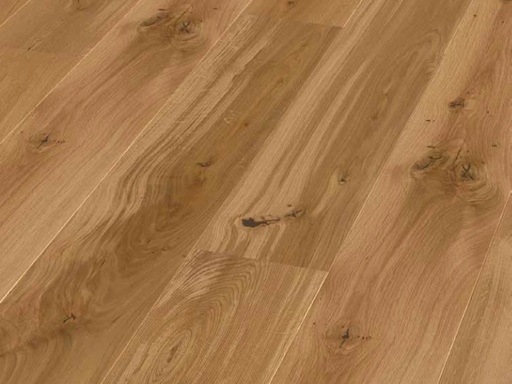 La couche d’usure en chêne de 2,5 mm d’épaisseur constitue la couche supérieure du parquet fini facile à entretenir.