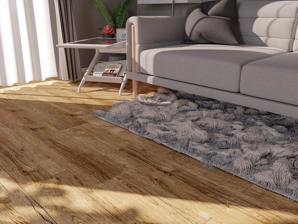 L’épaisseur totale des lames de ce parquet de qualité supérieure est de 14 mm. Grâce au système d’assemblage par clic, le parquet peut se poser facilement de manière flottante.