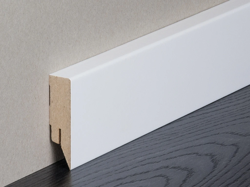Plinthes avec une âme solide en MDF et une surface laquée.