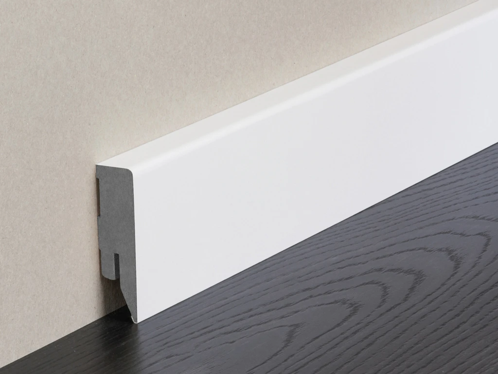 Technique de clipsage rapide et simple: Les plinthes sont simplement fixées sur des clips de plinthes et peuvent être retirées sans problème. De plus, les clips de plinthes avec profondeur de passage de câbles – disponibles en option – sont idéaux pour la pose de câbles cachés.