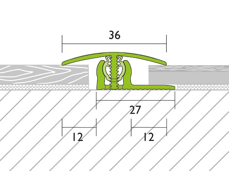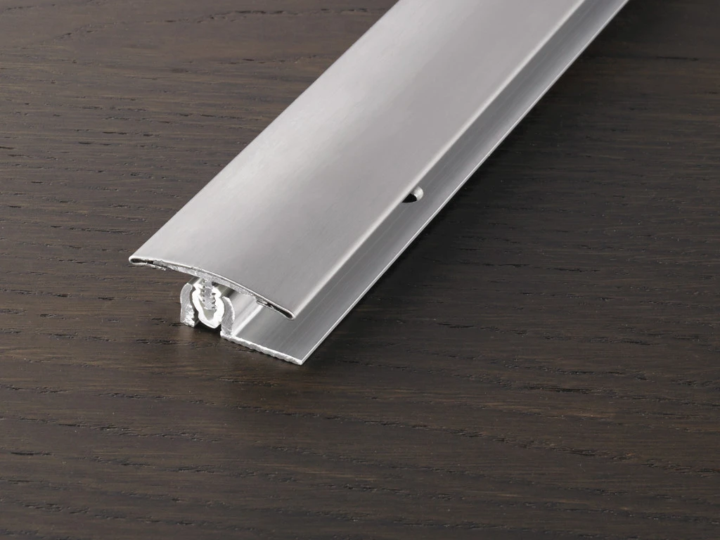 • Pour les profilés de transition et d’adaptation, le profilé de recouvrement des revêtements de sol à relier est encliqueté dans l’articulation en plastique du profilé de base.