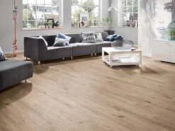 L’épaisseur des lames de ce sol est de 8 mm. Une pose flottante sans colle ? C’est possible grâce à l’astucieux assemblage par clic 1c2g pure.