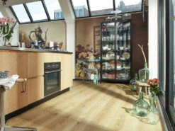 Ce produit est équipé d’un panneau support résistante à l’eau et est donc parfaitement protégé contre l’humidité. Ce revêtement de sol peut donc être posé sans problème dans les pièces humides comme la cuisine ou la salle de bains. Le sol design de KronoFlooring est validé pour une utilisation au-dessus d’un chauffage par le sol à eau chaude.