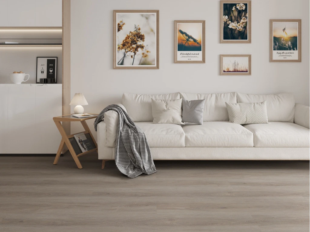 La pose de ce sol avec une couche d’usure de 0,2 mm convient aux pièces à charge normale comme la chambre à coucher ou le bureau.