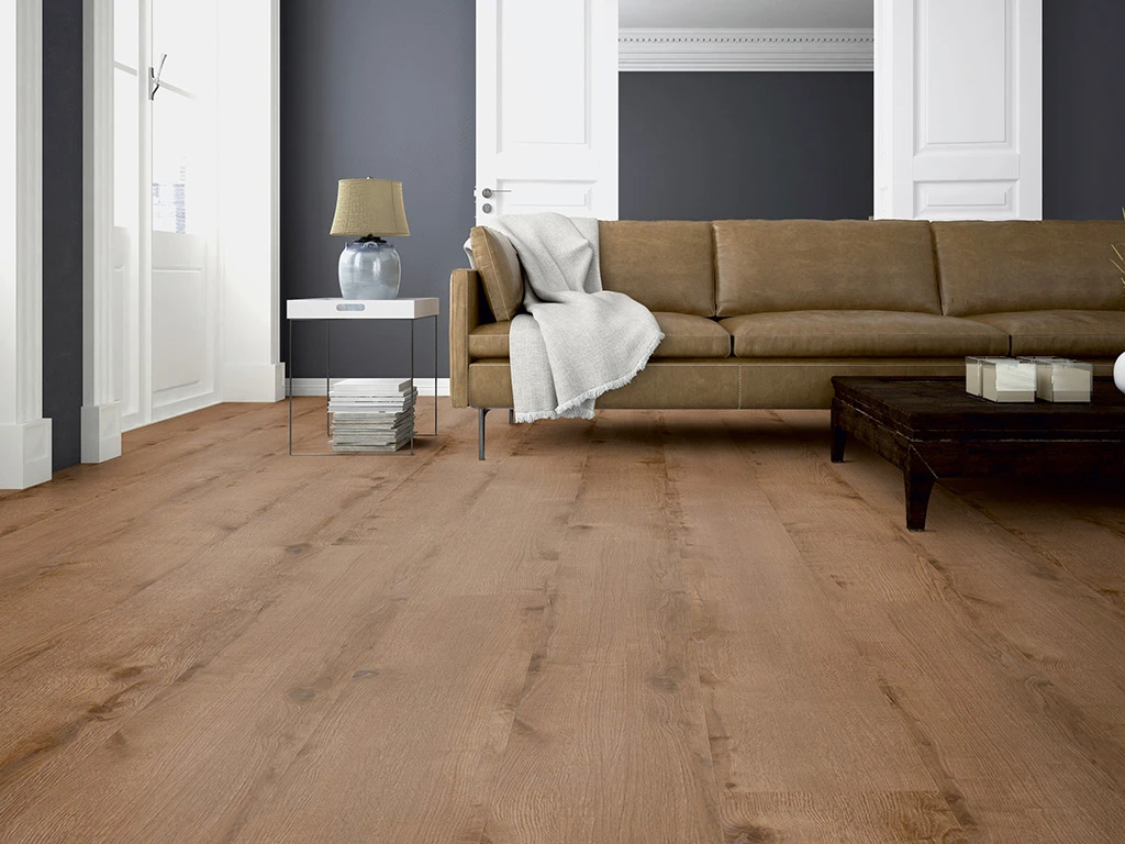 Grâce à la couche d’usure de 0,55 mm, le sol peut être posé même dans les chambres d’enfants, les couloirs et les pièces plus fréquentées.