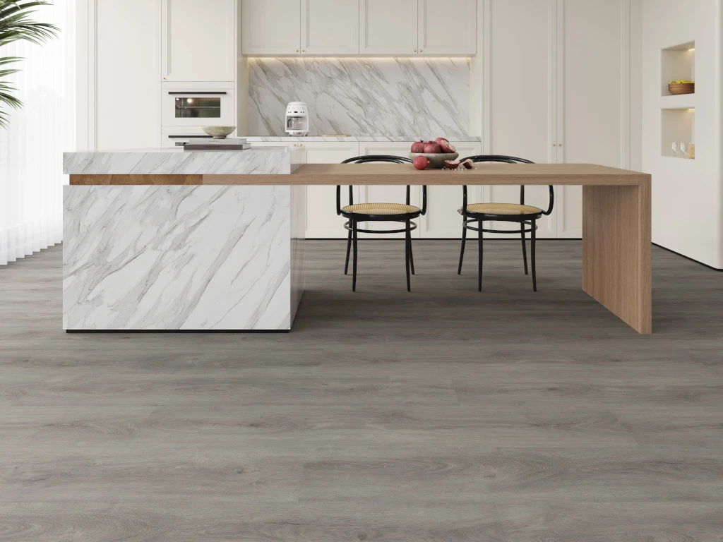 La veinure typique du bois de chêne du décor dégage une classe intemporelle et une chaleur