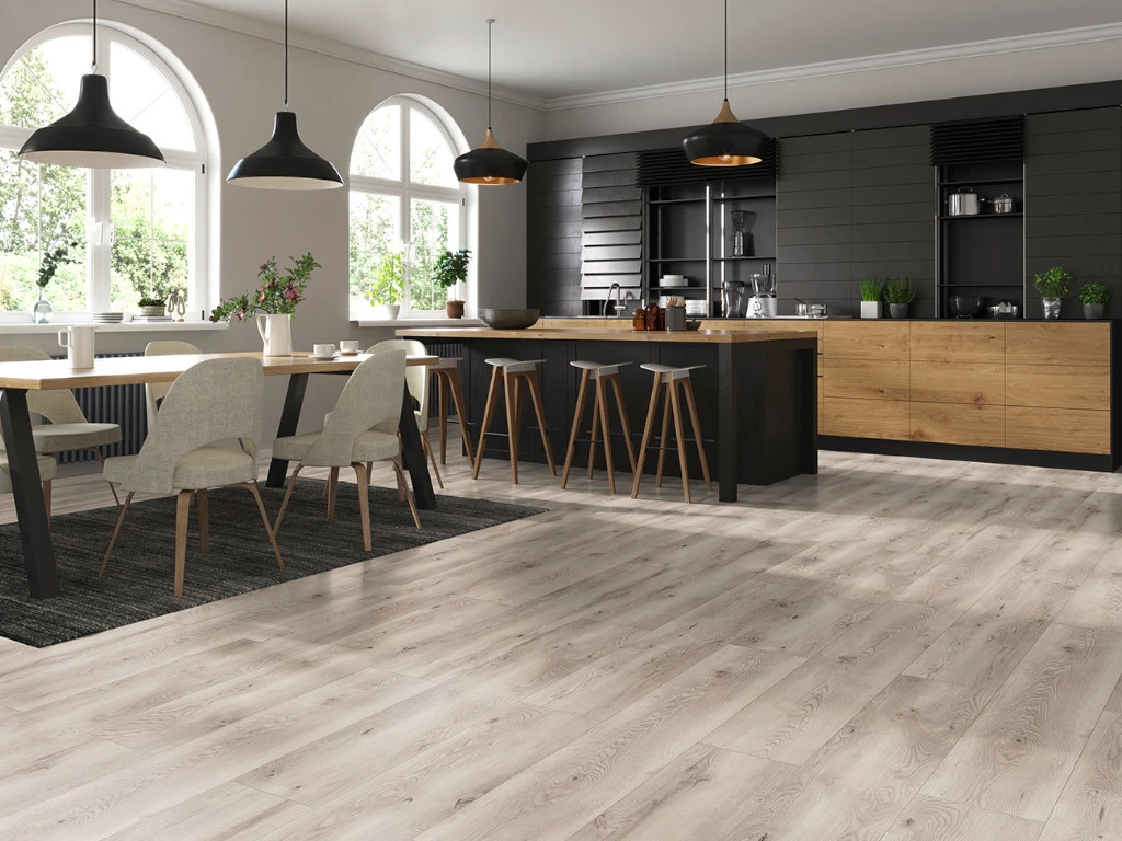 Les veinures typiques du chêne du décor dégagent une classe intemporelle et une chaleur confortable.