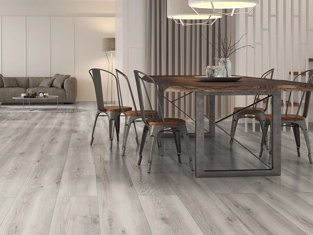 Les veinures typiques du chêne du décor dégagent une classe intemporelle et une chaleur confortable.
